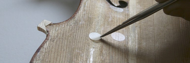 The parchment covers from SCHILBACH are specially hand-worked to a thinness of between 0.05mm-0.12mm, making them several times lighter and thinner than traditional parchment covers. This prevents deformation of the belly, back, and ribs through excessive tensile forces. The parchment covers are roughened on one side to provide the ideal surface for restoration glue bonding. Parchment covers from SCHILBACH have also proven to be an excellent option to cover cracks on closed instruments.
